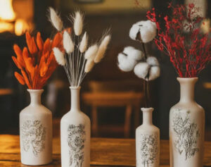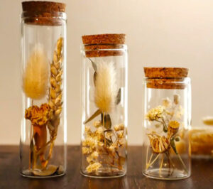 ۵. شیشه‌های دکوری با گل خشک