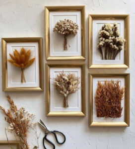 می‌توانید گل‌های خشک را درون قاب شیشه‌ای دابل‌گلس قرار دهید و روی دیوار نصب کنید. این کار، جلوه‌ای هنری به گل‌های خشک شما می‌دهد.
