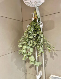 در حمام‌هایی با نور طبیعی، می‌توانید گل‌هایی مانند اکالیپتوس خشک‌شده را آویزان کنید. این گل‌ها نه تنها زیبا هستند، بلکه رایحه ملایمی هم دارند.